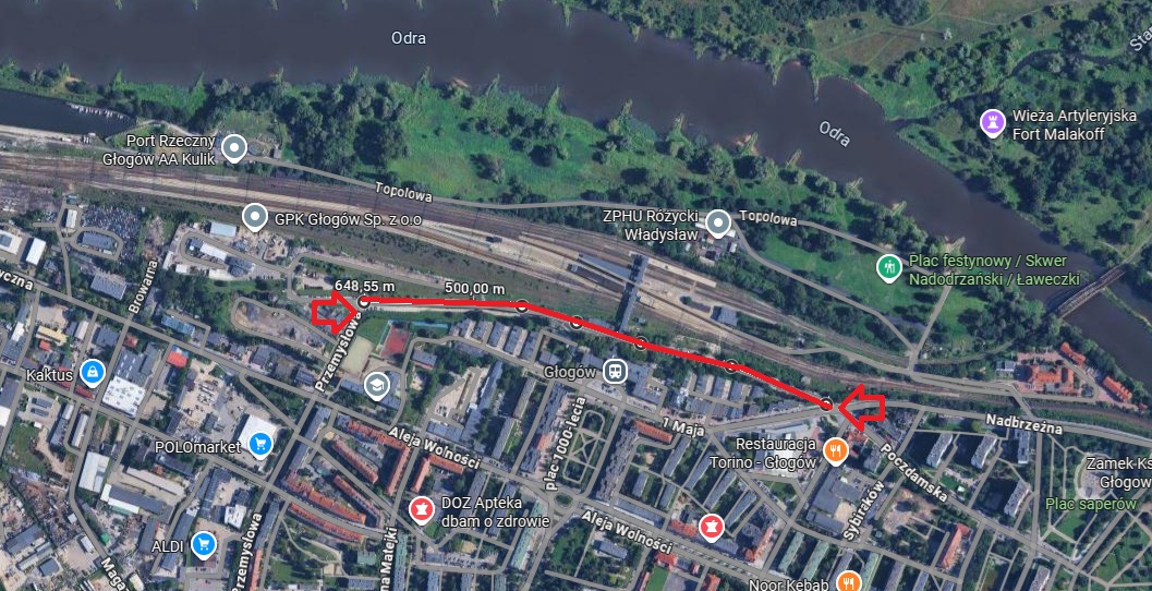 Jednym z elementów, które zainteresowały i nas, i mieszkańców, była sama lokalizacja planowanej inwestycji, bo z wypowiedzi prezydenta trudno było jednoznacznie wywnioskować, jak z obiektu znajdującego się na skrzyżowaniu ulic Poczdamskiej, Jedności Robotniczej i Towarowej miałby zostać poprowadzone dojście do estakady na perony, znajdującej się - bagatela - ok. 326 m dalej?