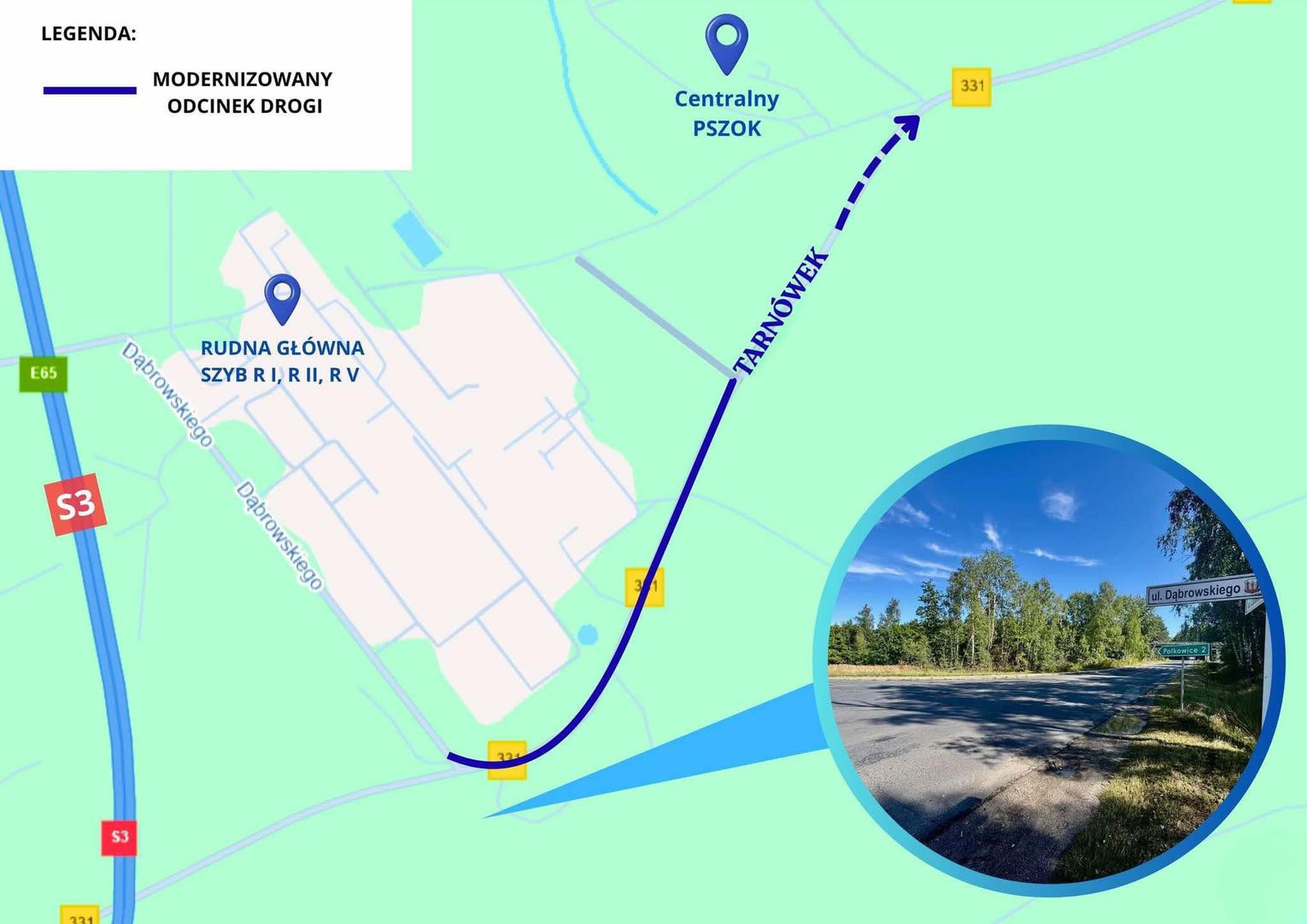 Nowa jezdnia jest już dostępna dla kierowców. Przebudowany fragment prowadzi do wielu zakładów pracy, dlatego poprawa stanu technicznego tej drogi była jednym z priorytetów zarówno dla samorządu gminnego, jak i powiatowego. Prace objęły odcinek od skrzyżowania ul. Działkowej z ul. Dąbrowskiego, w kierunku Tarnówka. W ramach zadania wzmocniono konstrukcję drogi i położono nową warstwę nawierzchni.