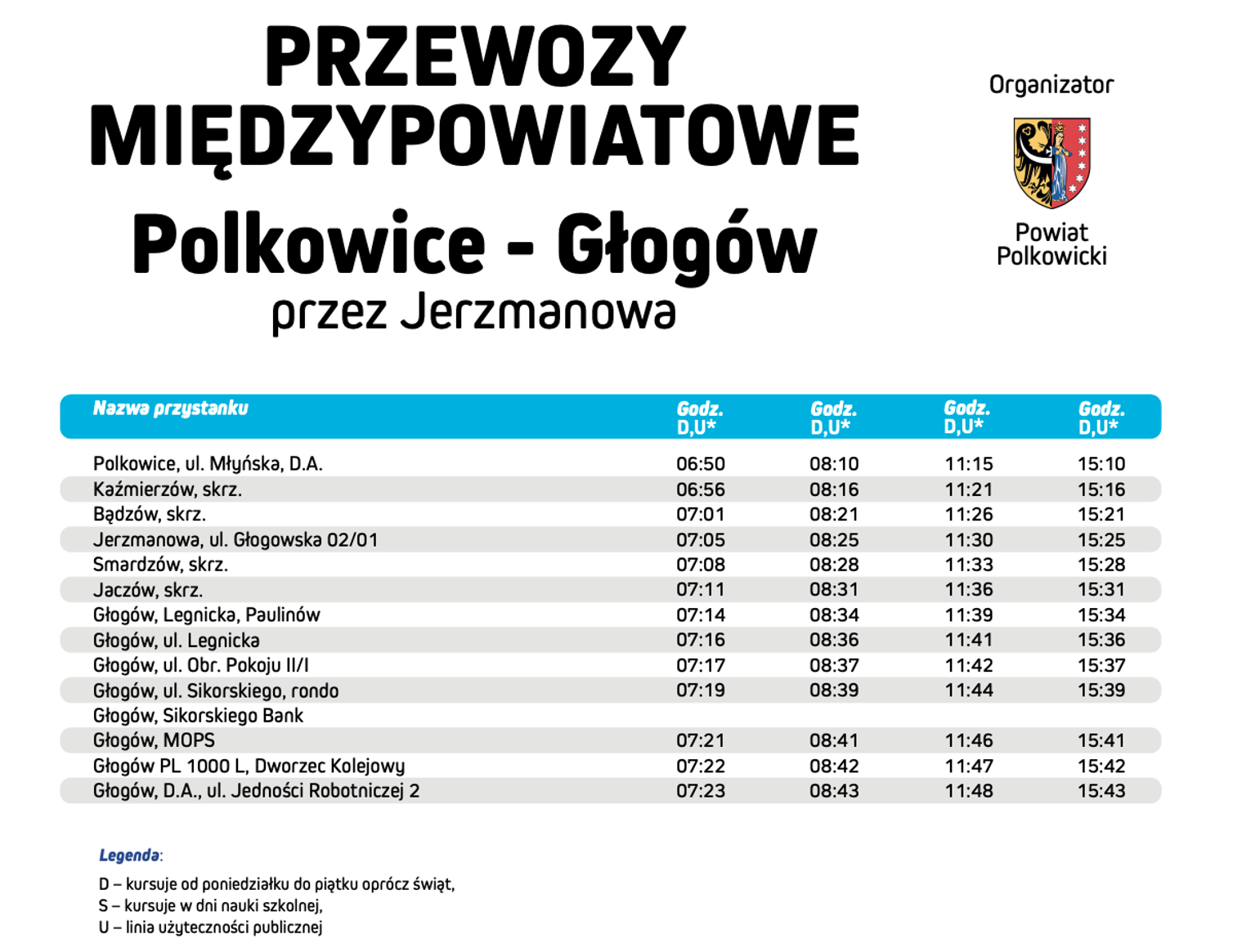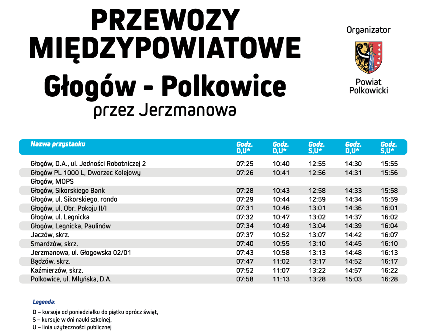 Aby formalnie przejąć zadanie, radni musieli podjąć stosowną uchwałę. Została ona przyjęta jednogłośnie. Dzięki tej decyzji autobusy nadal będą kursować na tej samej trasie. Od 1 kwietnia obowiązywać będzie dotychczasowy rozkład jazdy. Zaplanowano pięć połączeń z Głogowa do Polkowic oraz cztery z Polkowic do Głogowa.