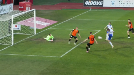Już w 2.minucie meczu 29.kolejki Betclic 1.Ligi. Chrobry objął prowadzenie w starciu ze Stalą Mielec. Po akcji Szymona Bartlewicza głgowianie naciskali tak, że YehorTsykalo wbił piłkę do wlasnej siatki.