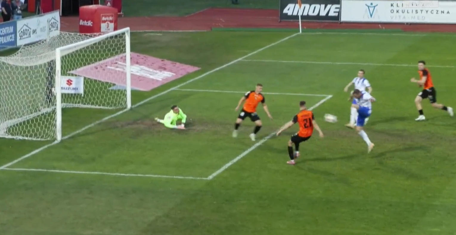 91.minuta Ozimek po genialnym dograniu Szabłowskego mógł "zamknąć" mecz, tyle że nabity obok bramki.